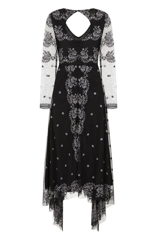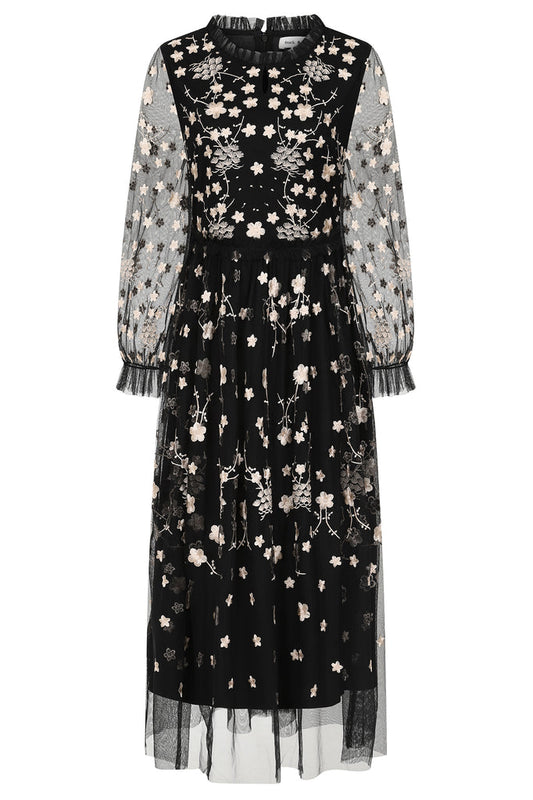 Black Floral Embroidered Midi Dress