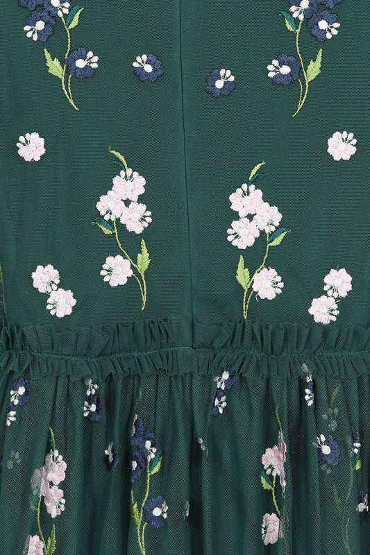 Alpine Green Floral Embroidered Maxi Dress
